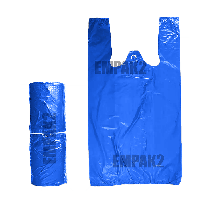 Las Bolsas Plásticas Tipo Camiseta de 32x35 cm son perfectas para todo uso. Ideales para tiendas, mercados y uso doméstico, estas bolsas están disponibles en: Azul.