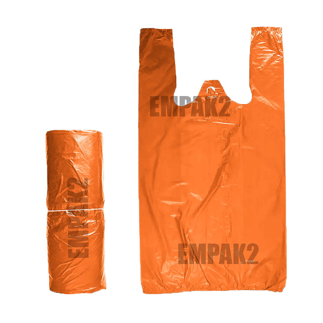 Las Bolsas Plásticas Tipo Camiseta de 35x40 cm son perfectas para todo uso. Ideales para tiendas, mercados y uso doméstico, estas bolsas están disponibles en: Naranjo.
